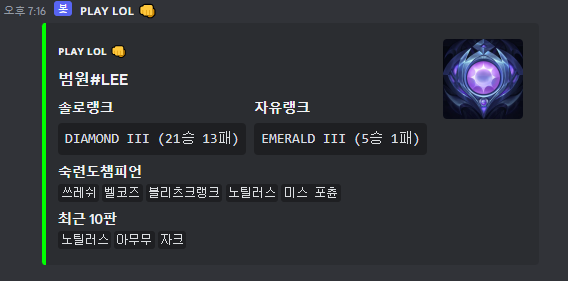 여기서 본인 제품을 적어주면 되고, 나는 디스코드에서 전적검색을 하겠다고 적고, 디스코드 채널주소를 입력했다. 승인은 1일만에 됐다.