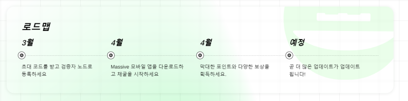 현재 3월 사전등록을 지나 4월 Massive 모바일 앱을 활용한 채굴이 시작되었습니다.
