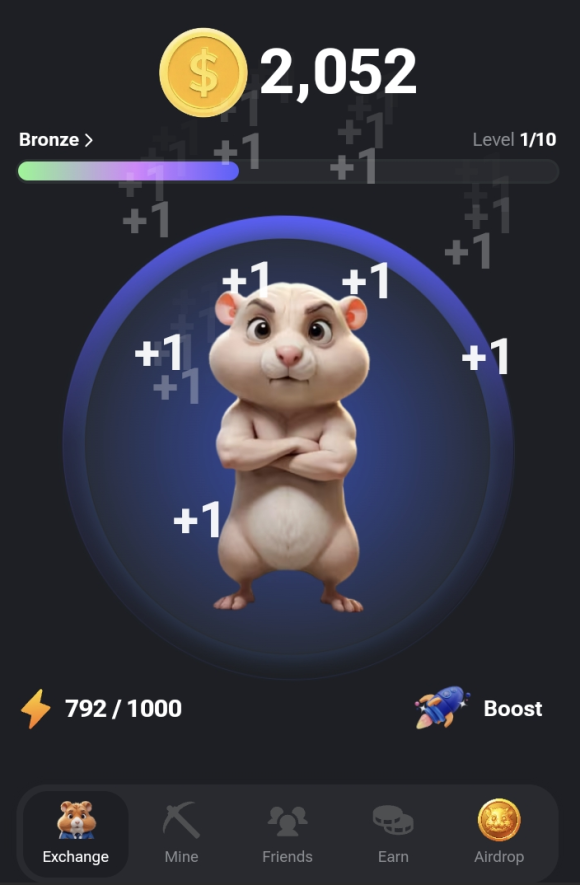 텔레그램 톤 기반의 햄스터 컴뱃은 번개모양의 에너지가 차면 클릭을 통하여 포인트를 획득할 수 있는 게임과 같은 기능을 가지고 있다. (자동으로 채굴이 되기도 하지만 클릭을 통하여 더 많은 포인트를 얻을 수 있다.