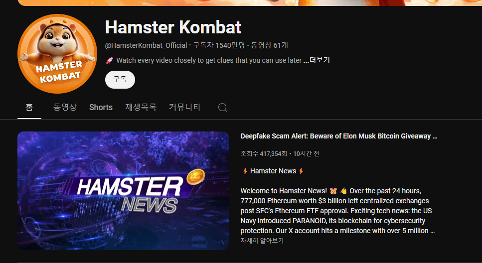 1. 하루에 사용하는 사람들이 3100만명, 햄스터컴뱃유튜브 구독자 1600만명, 7월 토큰상장 코인입니다.