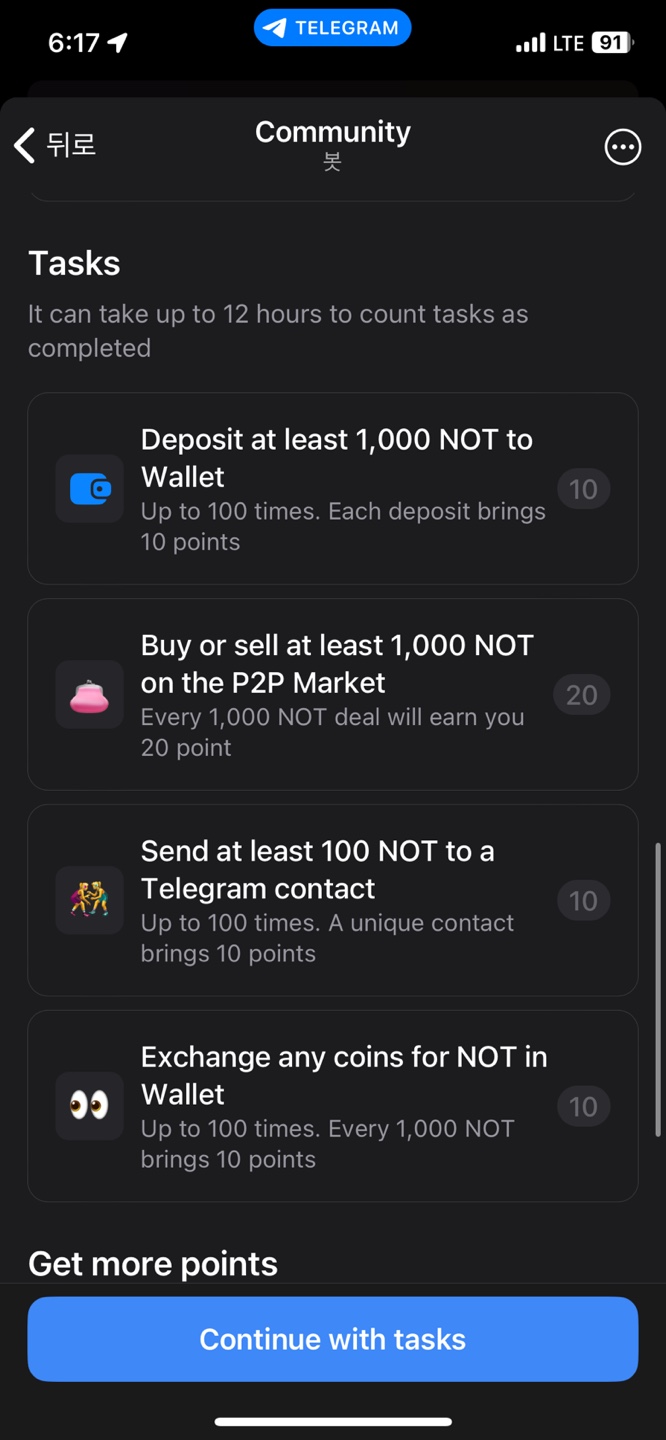 무료로 할 수 있는 점수제도가 많으니 꼭 해보셔서 무료로 NOT코인을 받아보세요.