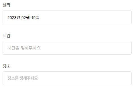 어플에서는 모임을 만들 수 있는데 날짜와 시간, 장소를 적는다.
