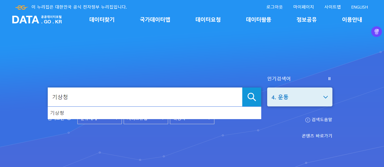 먼저 API를 사용하기 위해 공공데이터사이트에 가서 가입해준다.