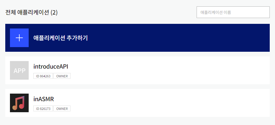 저장하여 만들어진 애플리케이션을 클릭하면 앱 키를 확인 할 수 있다.