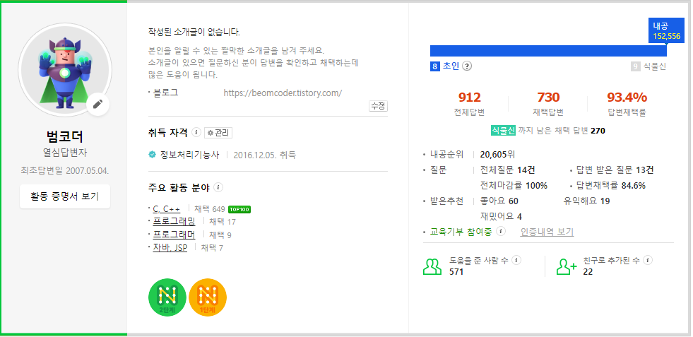 답변을 하다보니 어느새 내공도 쌓이고 꽤 재밌기도 하다.