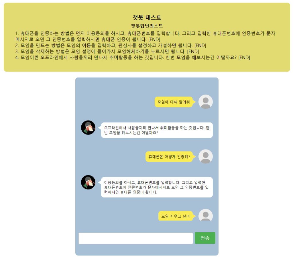 여기까지만 해서 코드를 API로 만들어서 통신하면 간단한 챗봇이 된다.
