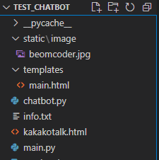 chatbot.py에서 아까와 같은 코드로 구성하고, main.py로 flask로 간단하게 구현했다.